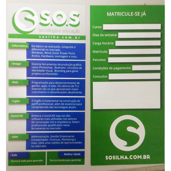 Panfletos de captação para a marca SOS com tiragem total de 25mil. Papel Couché 115g