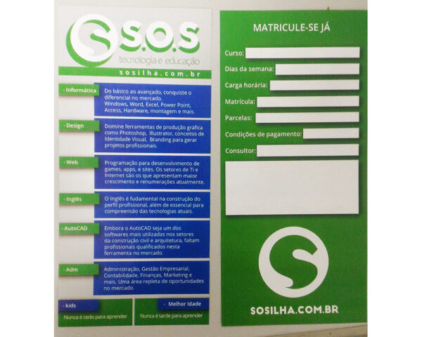 Panfletos de captação para a marca SOS com tiragem total de 25mil. Papel Couché 115g
