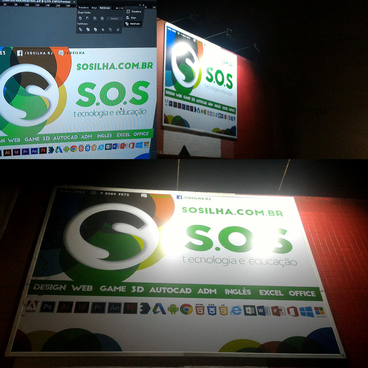 O letreiro foi elaborado com o intuito de construir uma apresentação excelente da Marca SOS tanto de dia quanto a noite.